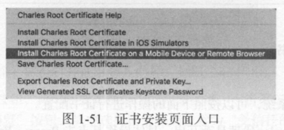 打开Charles Help→SSL Proxying• Install Charles Root Certificate on a Mobile Device or Remote Browser,如图 1-51所示