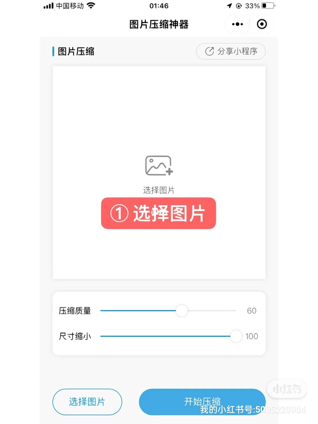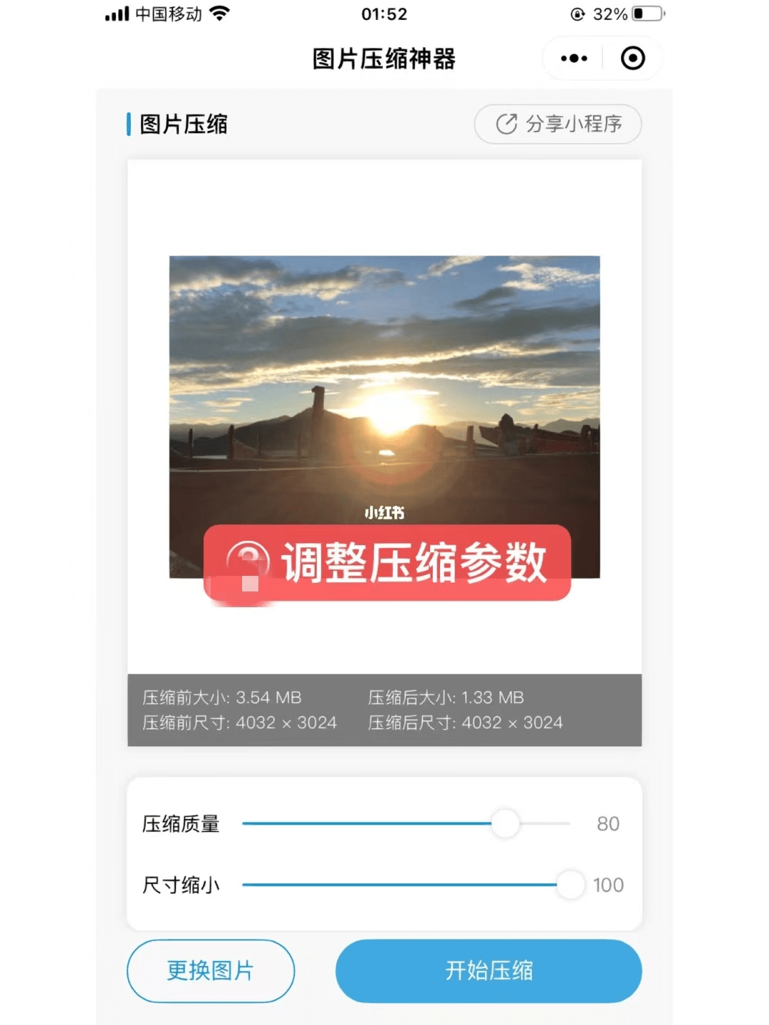 ③调整一下图片的“压缩质量”和“压缩大小”调整到合适的数值,点击开始压缩。