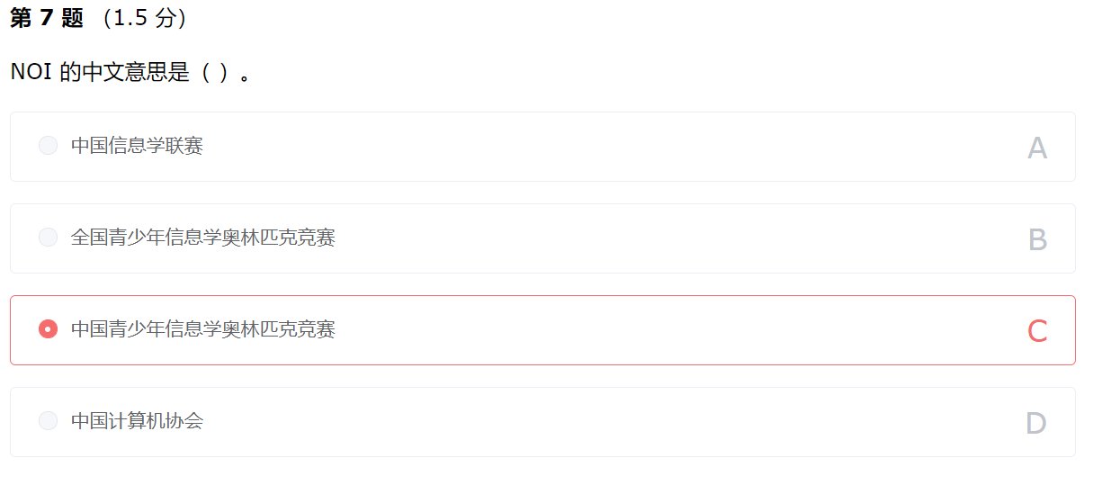常识,NOI 是指全国青少年信息学奥林匹克竞赛(National Olympiad in Informatics)。
