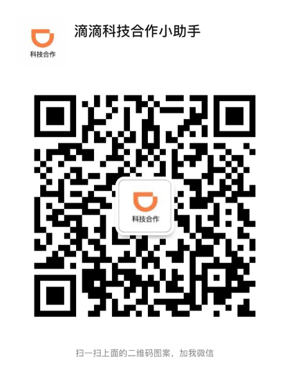 扫码添加滴滴科技合作小助手,回复「滴滴云」,小助手拉你进入直播群。积极参与课程互动,完成课后问卷环节,有机会获得滴滴为大家准备的精美礼品。
