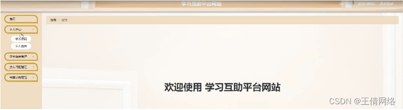 学习互助平台网站,在网站首页可以查看首页,学生信息,发布问题,书籍求助,交流论坛,公告信息,个人中心,后台管理等内容进行详细操作,如图5-1所示。