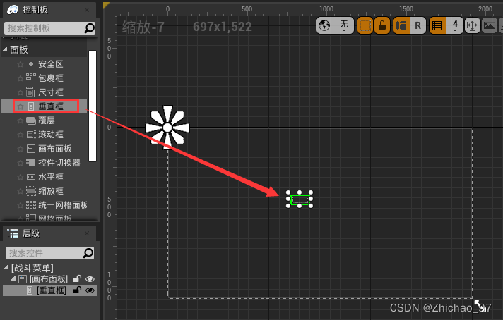 3.添加一个垂直框控件,在垂直框内的其它控件会自动垂直排列