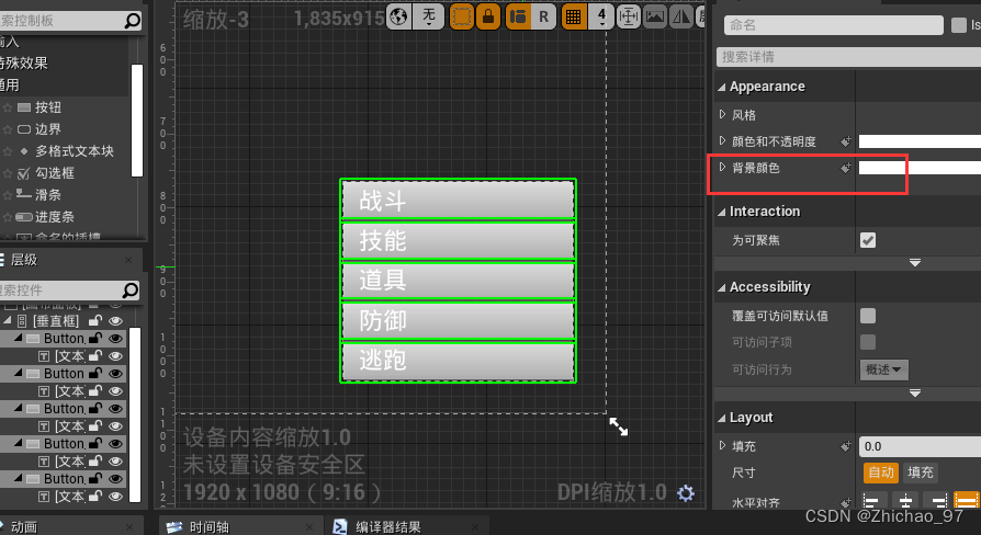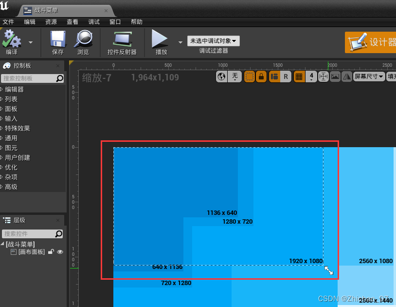 2.双击打开战斗菜单,将UI界面的大小调整为1920×1080