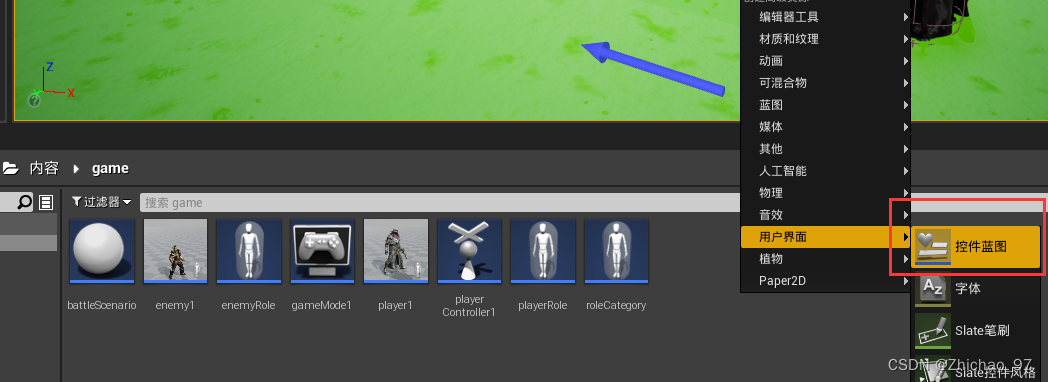 通过如下三个控件就可以在游戏开始运行时,显示战斗界面到视口中了