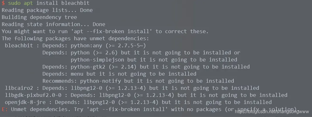 E: Unmet dependencies. Try 'apt --fix-broken install' with no packages (or specify a solution).