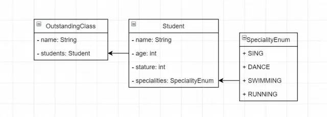 示例:本篇所有示例都基于以下三个类。OutstandingClass:班级;Student:学生;SpecialityEnum:特长。