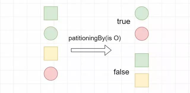 常用的流操作是将其分解成两个集合,Collectors.partitioningBy帮我们实现了,接收一个Predicate函数式接口。