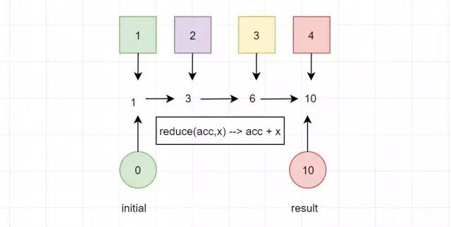 我们看得reduce接收了一个初始值为0的累加器,依次取出值与累加器相加,最后累加器的值就是最终的结果。