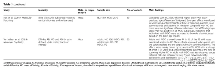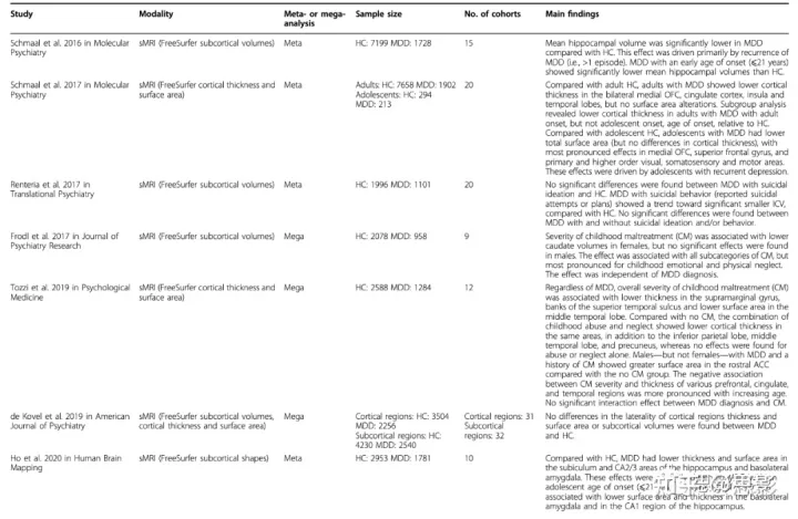 表1:迄今为止发表的ENIGMA MDD研究概述