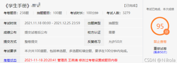 (后来发现有的题目答案跟手册不太一样,我觉得这是出卷人的问题了。我们只要填跟手册一样,是能够90以上的)
