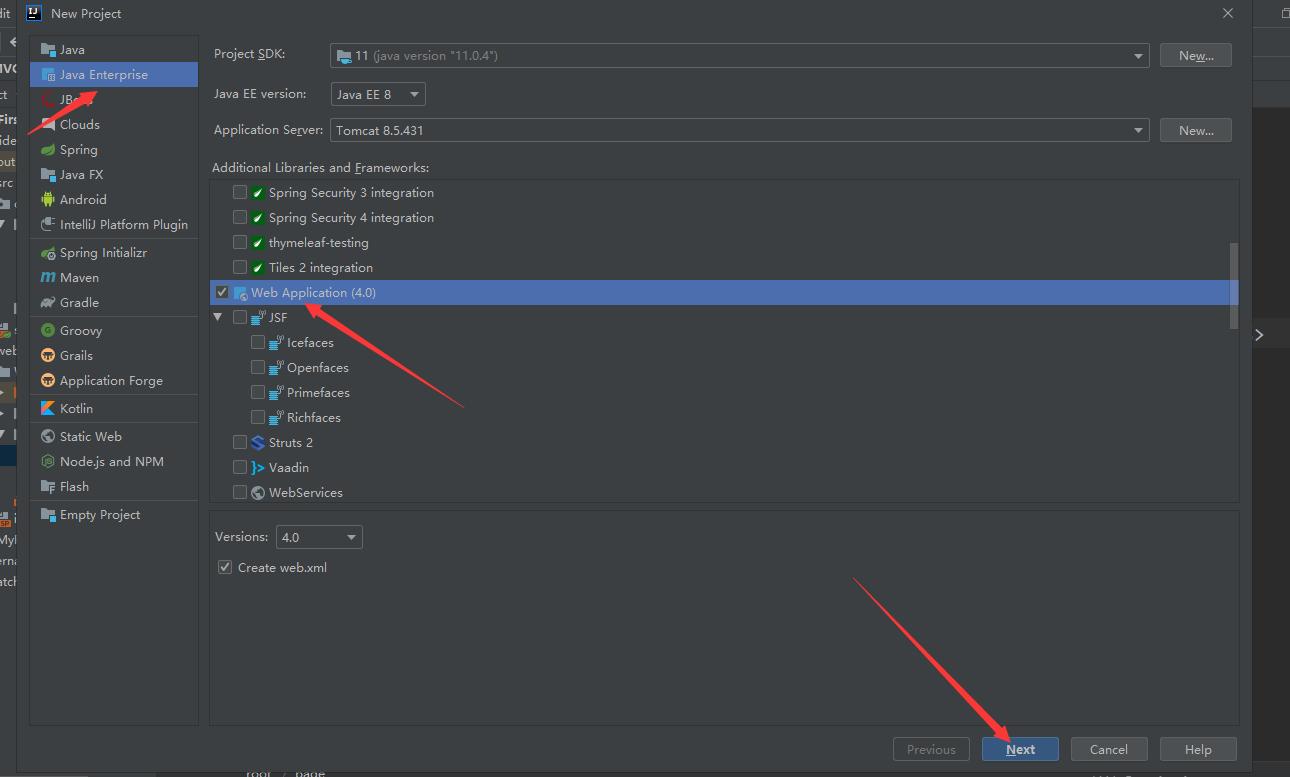 首先创建一个动态web项目,点击左上角的 file ,选择 new ---> project,然后选择web Application,点击 next,给项目起个名字,点击 finish 完成创建。