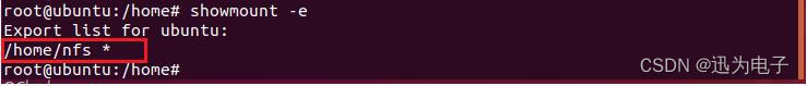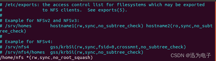 /home/nfs/:要共享的目录;“/home/nfs/ ”目录需要自己建,默认Ubuntu 中是没有的。