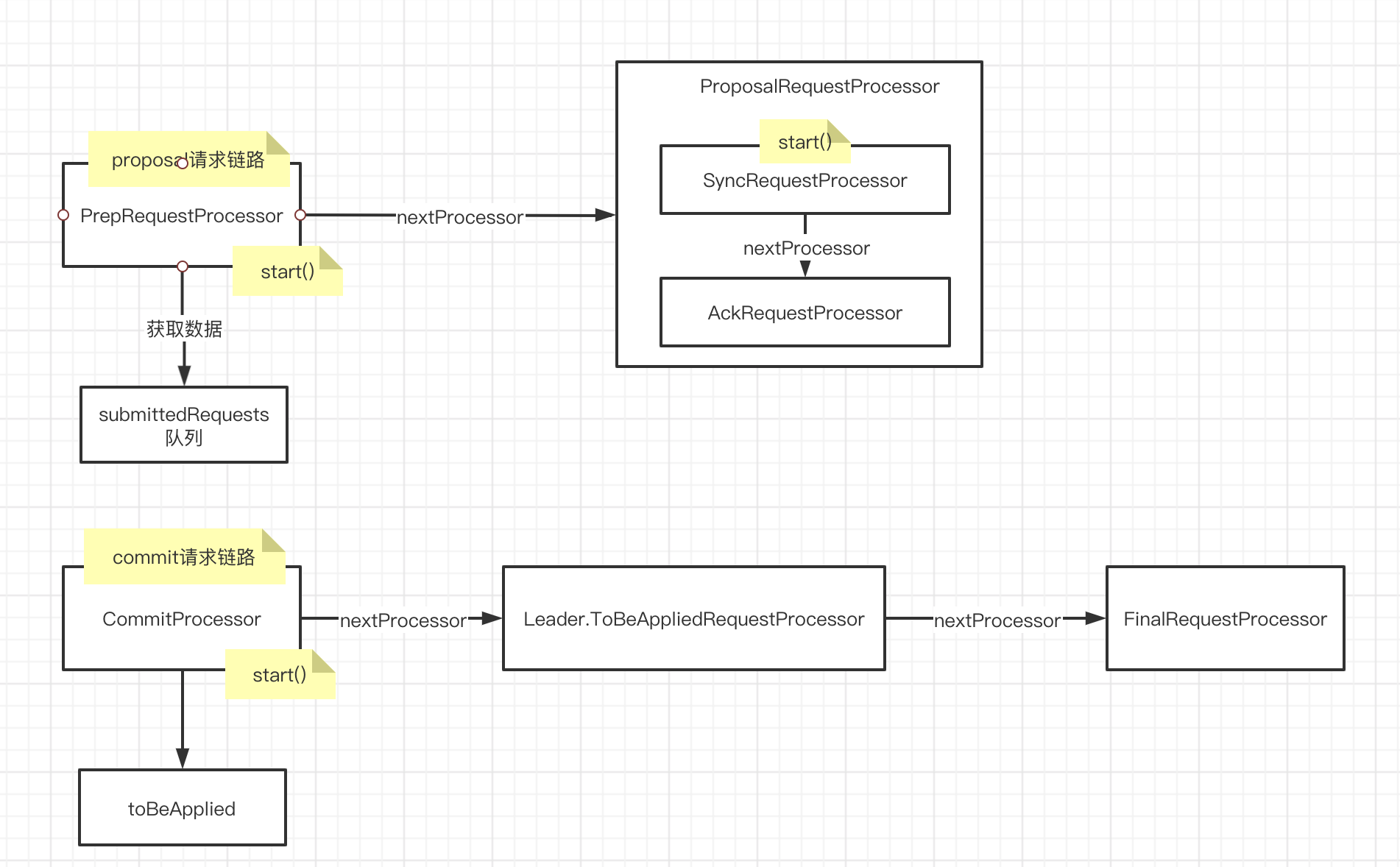 我们猜想一下这个方法也肯定会初始化leader的processor调用链,当一个写请求进来之后,然后去一步步执行初始化好的Processor调用链
