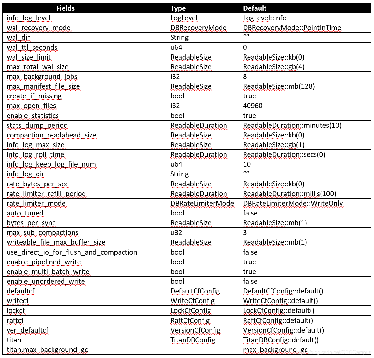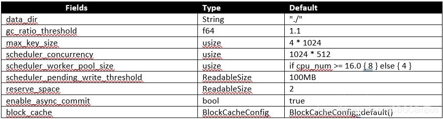 从变量名字上可以知道,这部分的代码逻辑是配置核心数据库的,也就是rocksdb的配置。我们可以看到这里主要是对cf做检测,cf的命名猜测应该是column family的简称,而主要检查内容就是块大小不能大于32MB。另外还有对titan和rocksdb的unordered_write配置检查。titan是pingcap开发的一个用来减少写放大问题的rocksdb插件,titan的理论基础来自于WiscKey。而unorder_write是一个提高rocksdb写性能的配置。这里有几篇文章可以扩展阅读一下。