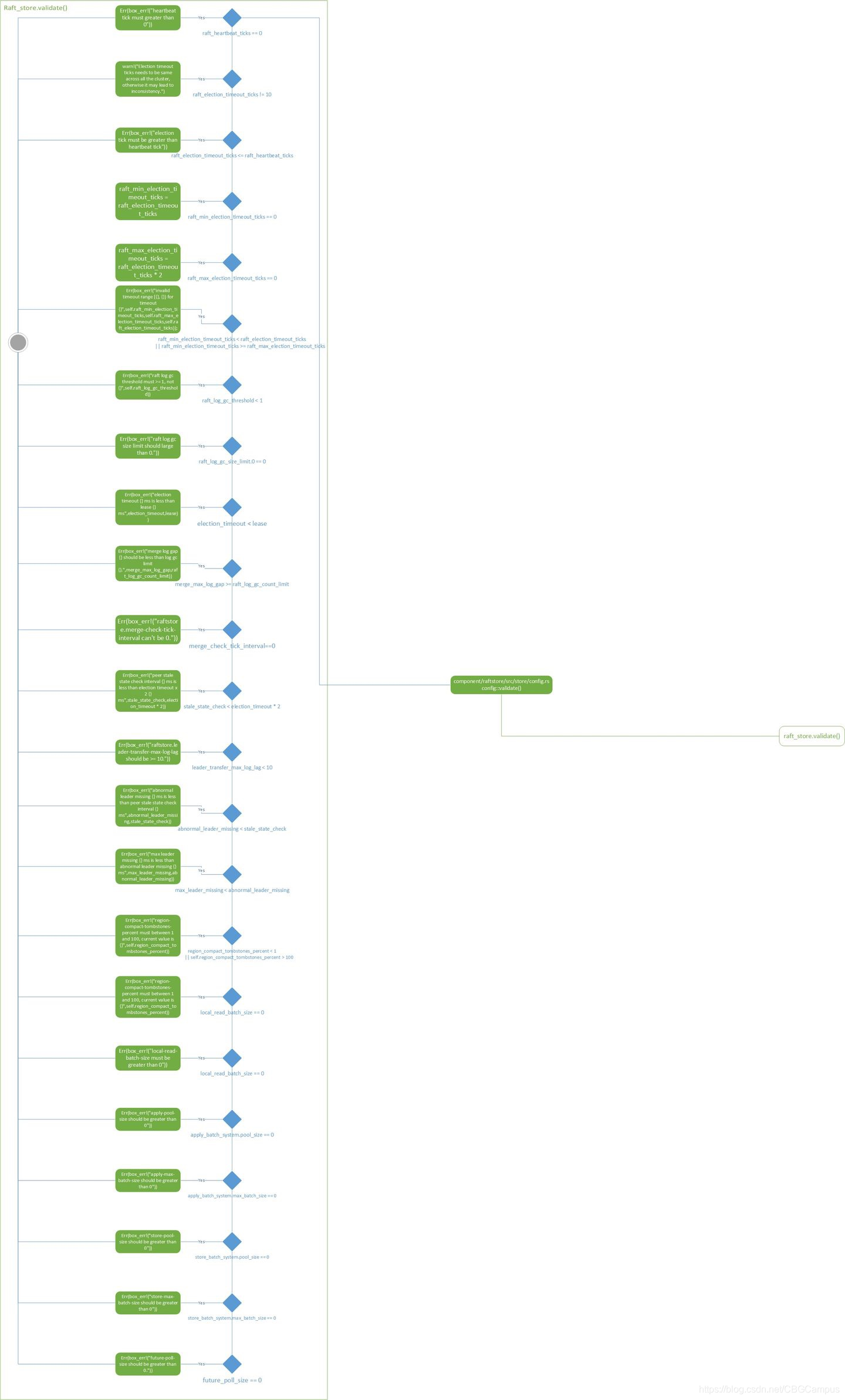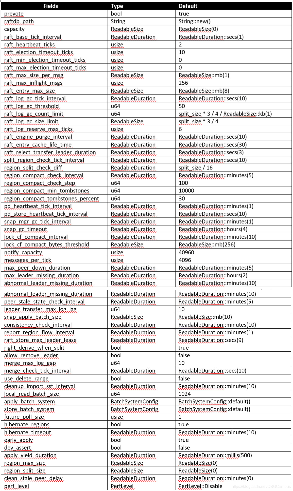 这个是所有配置逻辑里面最复杂的部分了,不过主要还是围绕raft算法进行配置,包括:Leader选举(Leader election)、日志同步(Log replication)、安全性(Safety)、日志压缩(Log compaction)、成员变更(Membership change)等。到此我们其实看到有三处地方与raft配置有关系的代码,设置raft存储目录,raftdb配置,raftstore配置,是不是可以把这些代码放在一起来维护?