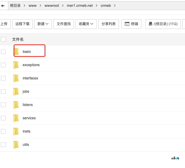 - 将新解压的 basic文件夹,放大crmeb文件夹下,再将crmeb.php 文件复制到 config文件夹下,涉及到的文件夹如下