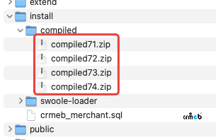 - 然后将这个加密文件上传到服务器项目下的crmeb目录,例如php7.2版本就上传