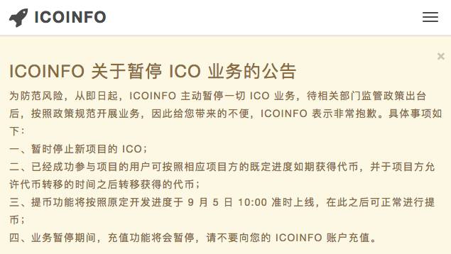 由于 ICO 的规则变化灵活,对确定监管主体和相关法规带来了难度。在国外,美国和新加坡都将 ICO 采取逐案评估的办法。而在中国,由于是新事物,国家的政策没有出来。但是至少我们可以看到,近期国家已经开始相关的监管工作了:一场本应于 9 月 2 日召开的区块链盛会被有关部门叫停,与此同时 ICOINFO 宣布暂停了 ICO 业务: