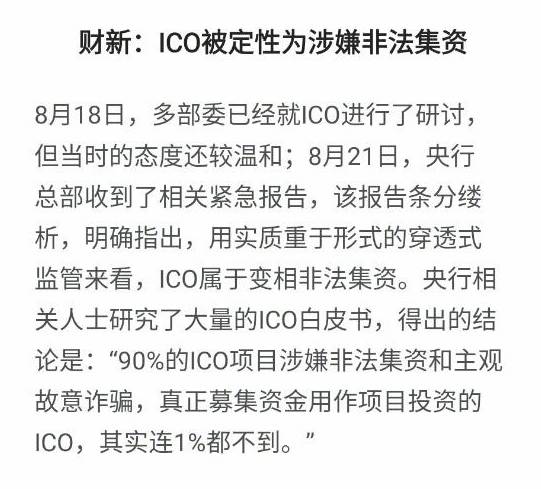 另外,据财新的报道,ICO 被监管认为是变相的非法集资。