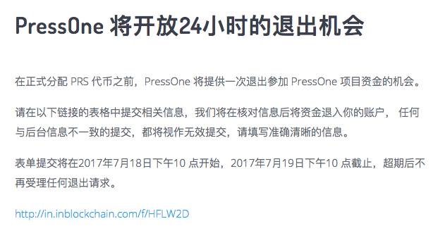 就连李笑来本人可能都认为投资者太疯狂了。在 PressOne 的官网上,没有项目的详细白皮书,但是却有关于该项目风险的明确提示。另外 PressOne 还提供了一个开放 24 小时的退出机会。我相信李笑来也希望 PressOne 的投资者是理性的,有风险意识的,这样对于项目的成功和失败才会更加坦然,而不是抱着投机的心态。