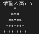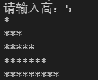 ******# 直角三角形 i = 1 h = int(input('请输入高:')) while i <= h:print('*'*(2*i-1))i += 1