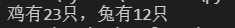 for chicken in range(0,36):rabbit = 35 - chickenif chicken * 2 + rabbit * 4 == 94:print(f'鸡有{chicken}只,兔有{rabbit}只')