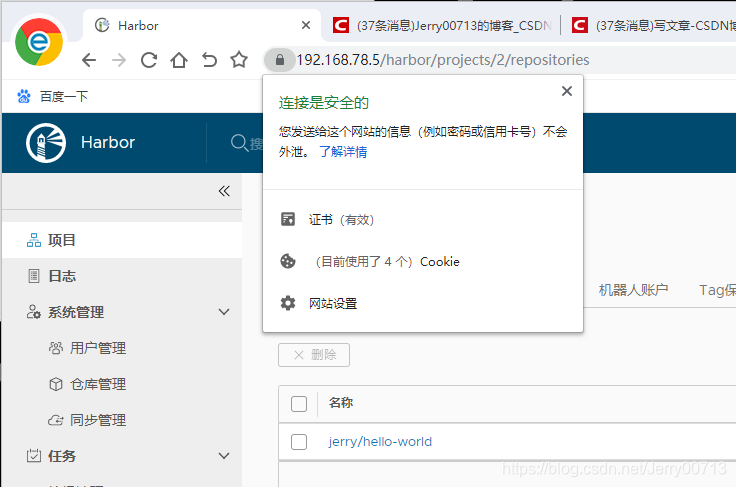 [root@localhost harbor]#docker push 192.168.78.5/jerry/hello-world:v1.2