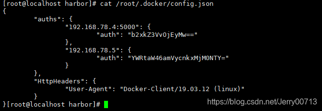 第一次登录需要账户admin 和密码,第二次登陆不需要,因为密码存在 /root/.docker/config.json 中的"192.168.78.5": { "auth": "YWRtaW46amVycnkxMjM0NTY=" }