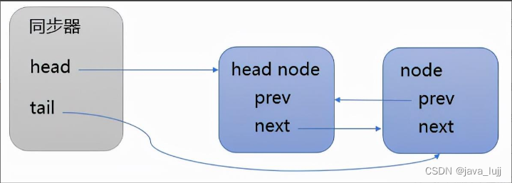 addWaiter执行结束后,同步驱动的结构如下所示: