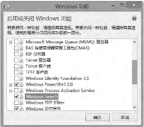 解决方案:首先检查一下是否关闭了系统搜索功能。在控制面板中找到“程序”,打开后点击进入“启用和关闭Windows功能”项,在打开的窗口列表中找到“Windows Search”,如果该选项未选中就会导致系统无法使用搜索功能,只要将其选中并点击“确定”,重启系统即可找回此项功能。截图如下: