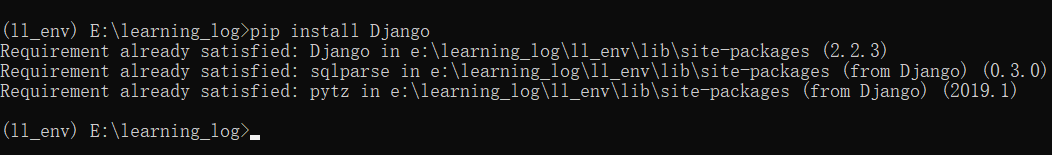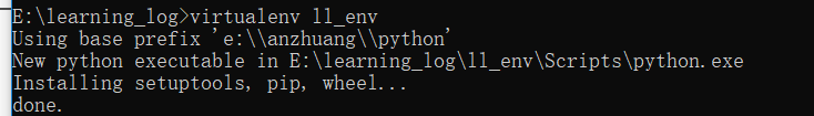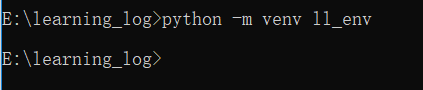 2.1:首先在E盘目录下新建文件夹learning_log,在learning_log下创建一个虚拟环境。切换到E盘