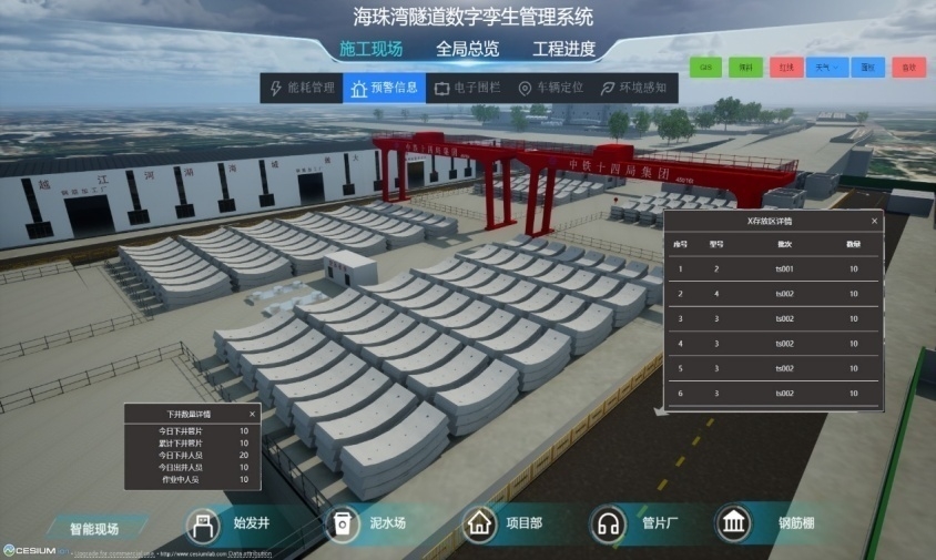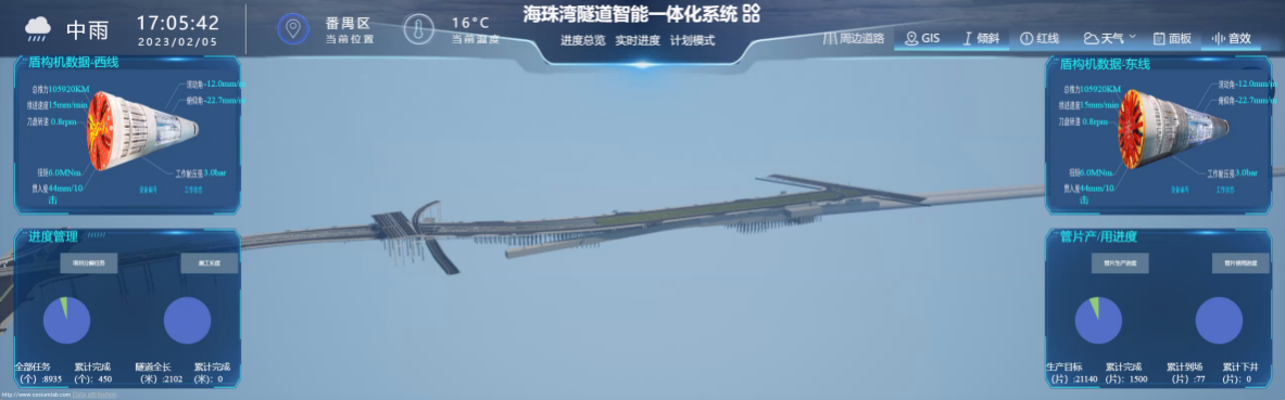 中铁十四局在海珠湾隧道工程项目中,面对隧道项目安全、进度、质量管理等问题,亟需一个智能管理系统辅助海珠湾隧道实施。天翎利用自身的优势打造了一套数字孪生系统,助力海珠湾隧道工程顺利实施。