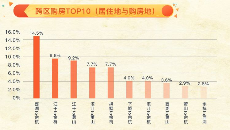 新杭州人疯狂抢占城区房,城区人只得向周边版块迁移,跨区购房人群的迁移路径中,排名前8位都是从目前居住的主城区外迁至萧山和余杭购房。但是不排除此类购房行为是带着投资目的,毕竟卧虎藏龙的城区老杭州人都深藏不露。