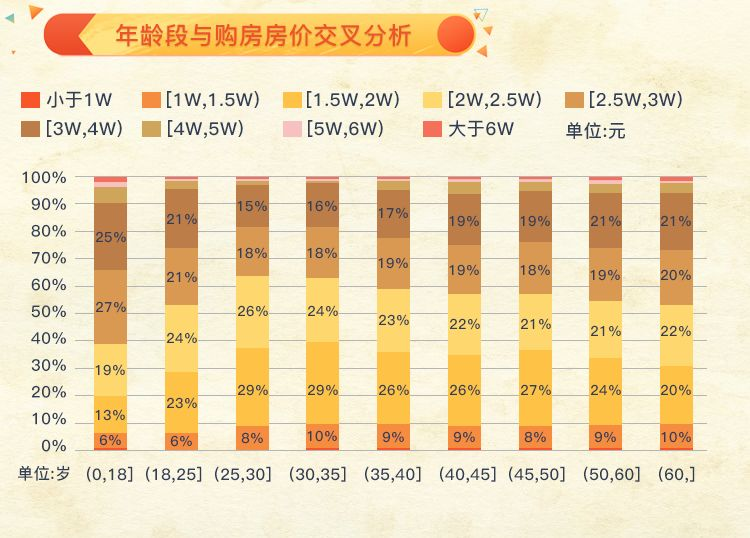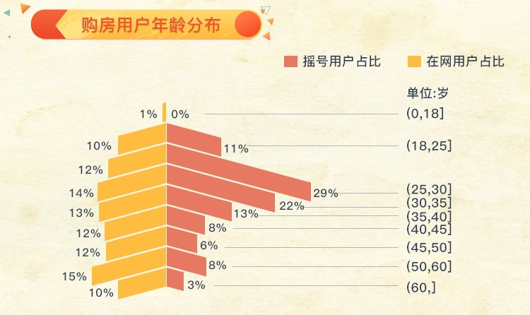 25岁至35岁正处于传统意义上成家立业的人生阶段,该年龄段人群缺房问题很严重,买房需求很膨胀,人群占比超过50%。