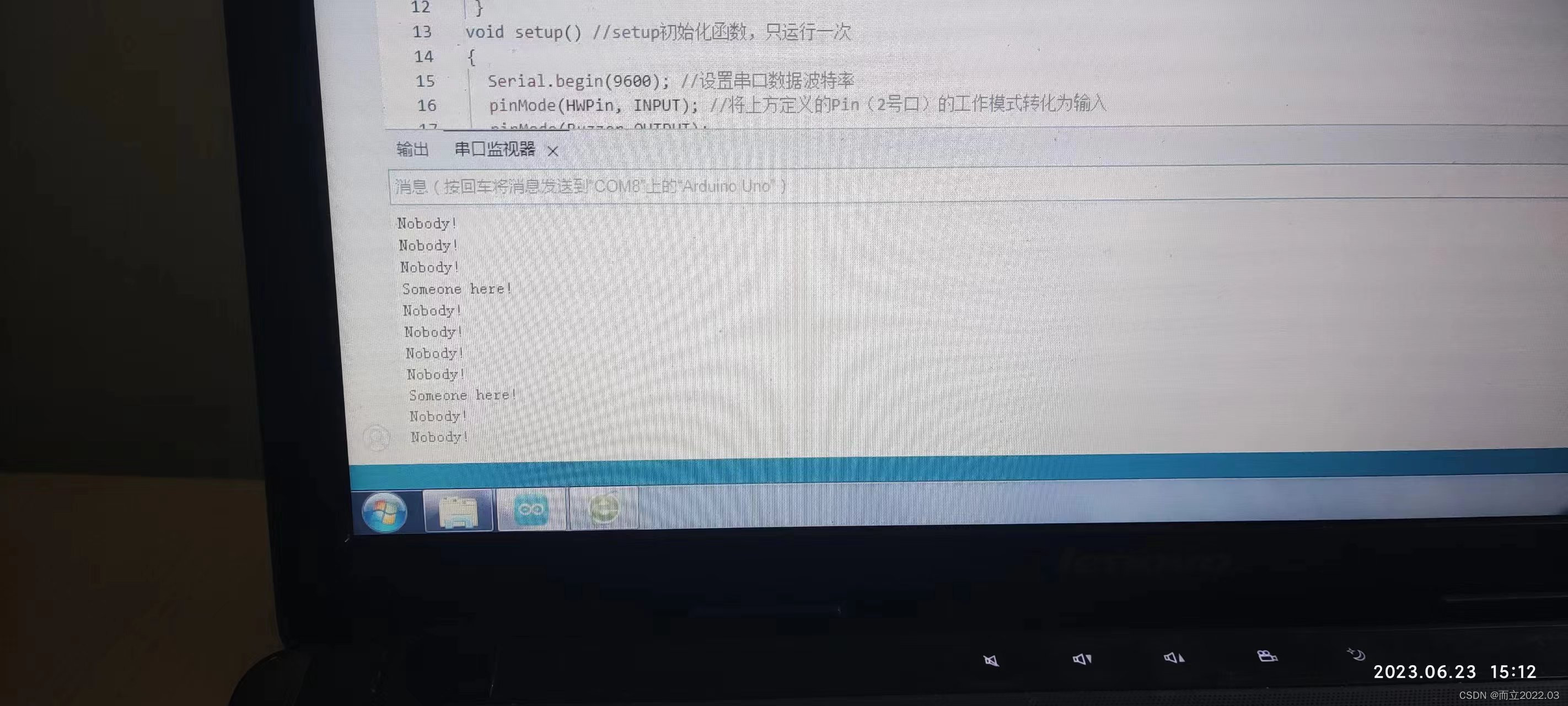 Serial.println("Nobody!");//不满足条件,在串口持续输出“Nobody”}delay(1000); //延时1秒