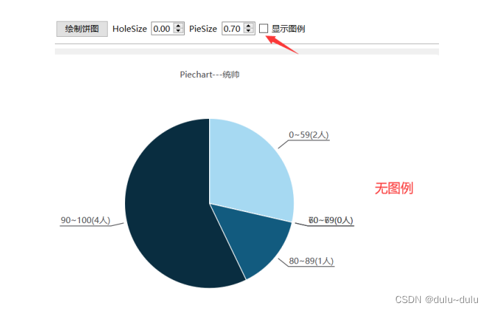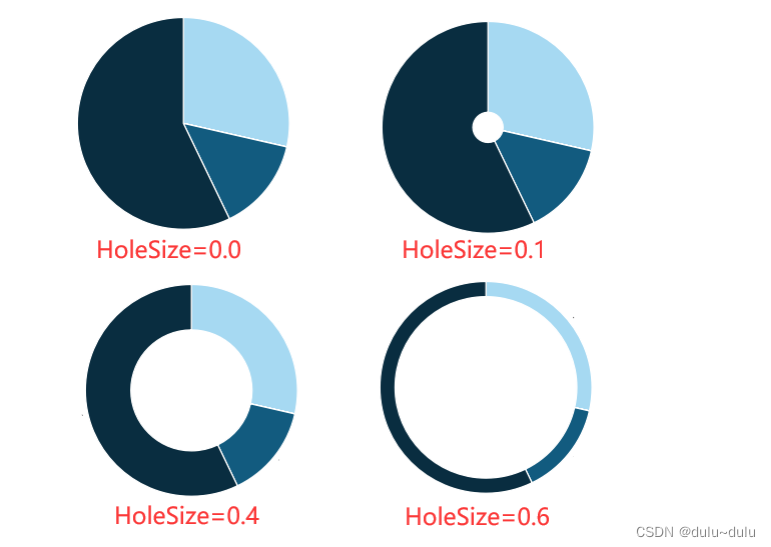 @pyqtSlot(int)def on_comboCourse_currentIndexChanged(self, index):self.draw_pieChart()@pyqtSlot(float)##设置holeSizedef on_spinHoleSize_valueChanged(self, arg1):seriesPie=self.ui.chartViewPie.chart().series()[0]seriesPie.setHoleSize(arg1)@pyqtSlot(float)##设置pieSizedef on_spinPieSize_valueChanged(self, arg1):seriesPie=self.ui.chartViewPie.chart().series()[0]seriesPie.setPieSize(arg1)@pyqtSlot(bool)##显示图例checkboxdef on_chkBoxPieLegend_clicked(self, checked):self.ui.chartViewPie.chart().legend().setVisible(checked) holesize的效果:
