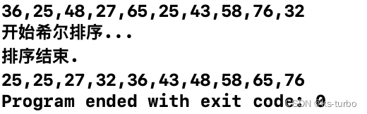 {int n = 10;SeqList R; // R为待排序的记录文件int d[T] = {5, 3, 1};R[1].key = 36; R[2].key = 25; R[3].key = 48;R[4].key = 27; R[5].key = 65; R[6].key = 25;R[7].key = 43; R[8].key = 58; R[9].key = 76; R[10].key = 32;p(R, n);printf("开始希尔排序...\n");ShellSort(R, d, T, n);printf("排序结束.\n");p(R, n);return 0;