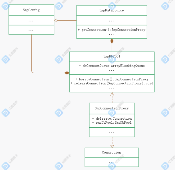 3:新增SmpDbPool类,内部维护一个阻塞队列保存数据库连接,并提供数据库连接的获取回收等方法。