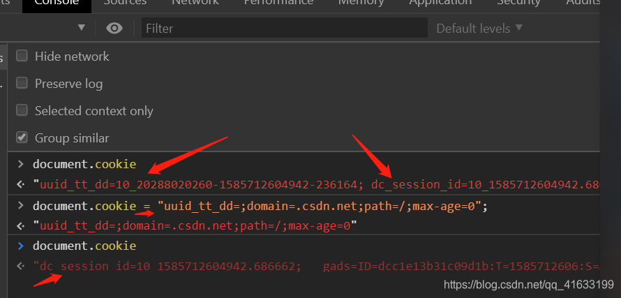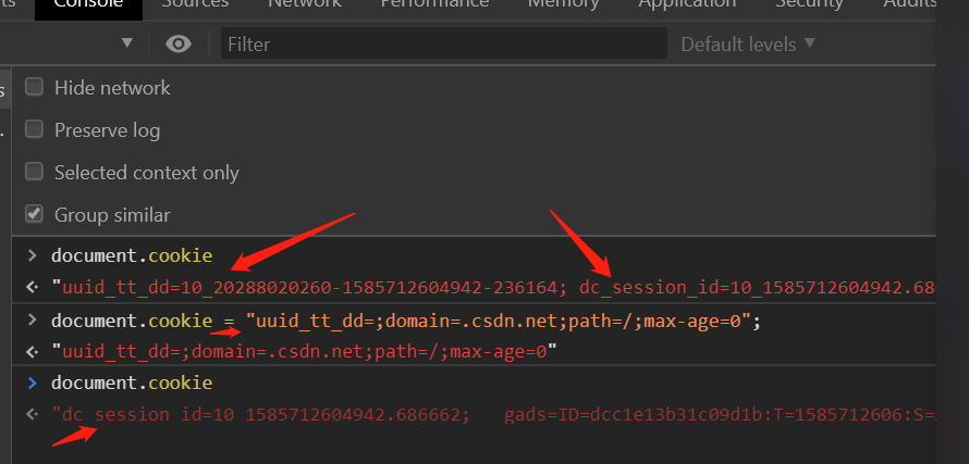 以下是此种方式在console执行,删除csdn cookie的效果,可以看到成功删除了指定的cookie,其他cookie不受影响: