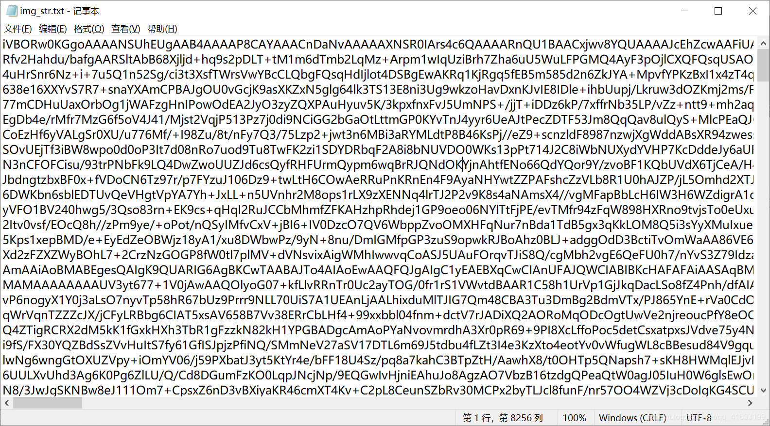 从生成的txt文件可以看出,二进制字节流数据经过base64编码后多占用了大约1/3的空间,主要是因为base64是将连续的6bit的二进制数据计算得出对应的10进制数值(2的6次方=64,一字节为8bit),再通过转换规则表得到对应的字符。