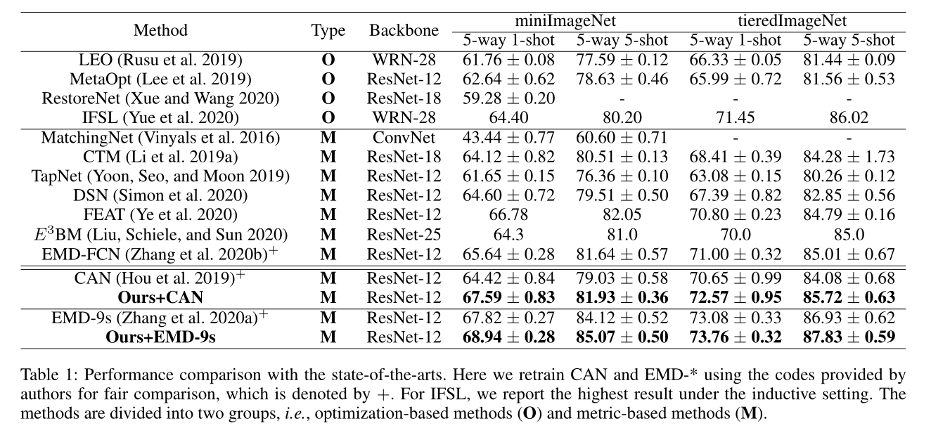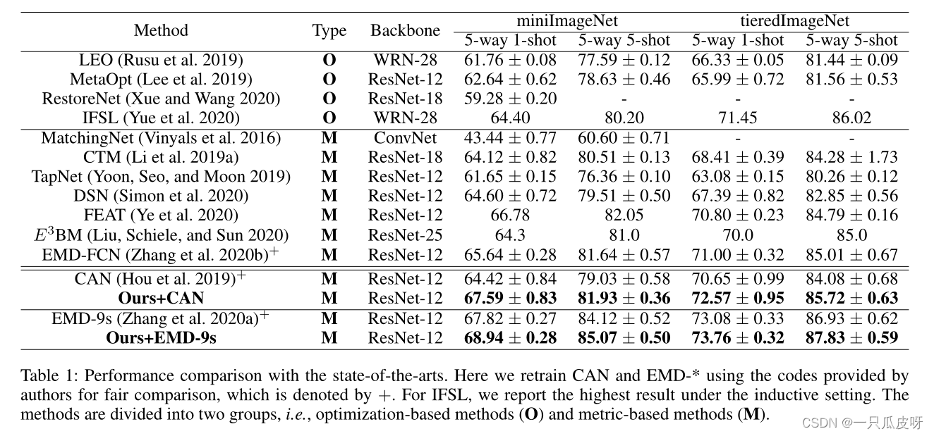 - 我们将所提出的技术整合到代表性的少样本学习方法中,并在 5-way 1-shot 和 5-way 5-shot 设置上对它们进行实验评估。结果表明,我们提出的方法可以始终如一地带来性能增益。