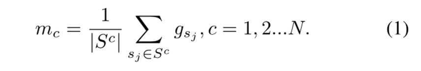 对于支持特征,我们使用平均向量为每个类计算一个原型向量: