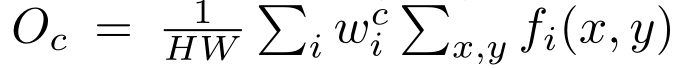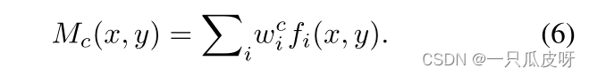 其中 H 和 W 表示空间分辨率,𝑤𝑖𝑐 是对应于单元i的类别c的权重。我们可以得到类 c 的类激活map Mc: