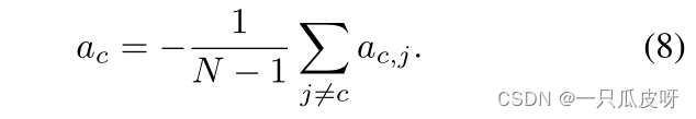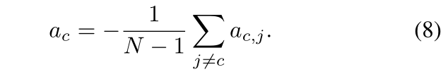具体来说,我们首先使用交叉减法计算原型之间的差异,然后应用非线性变换 A 得到 𝒂𝒊,𝒋 = A(mi− mj)。之后,我们得到某个类别 c 的特征与其他类别的特征之间的差异信息: