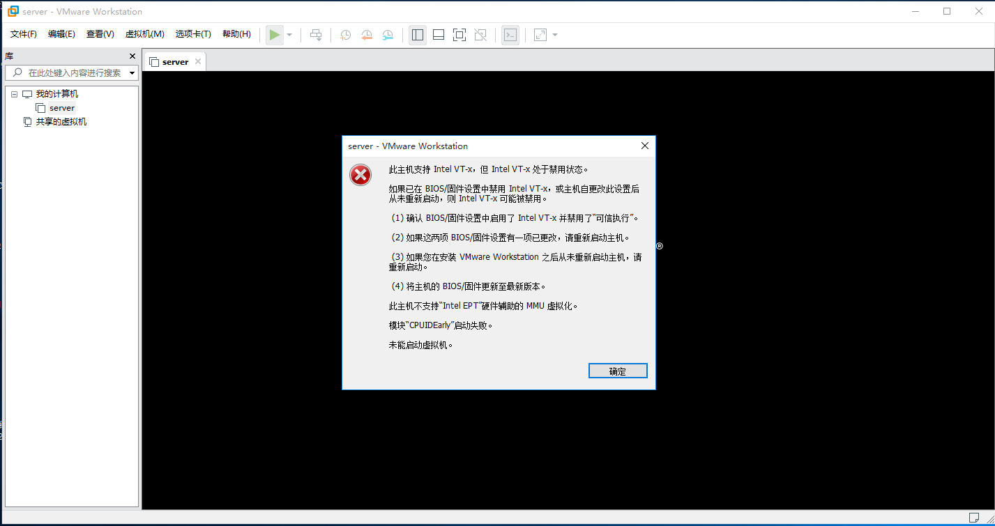 vmware安装虚拟机出现虚拟化提示:此主机支持Intel VT-x,但Intel VT-x处于禁用状态