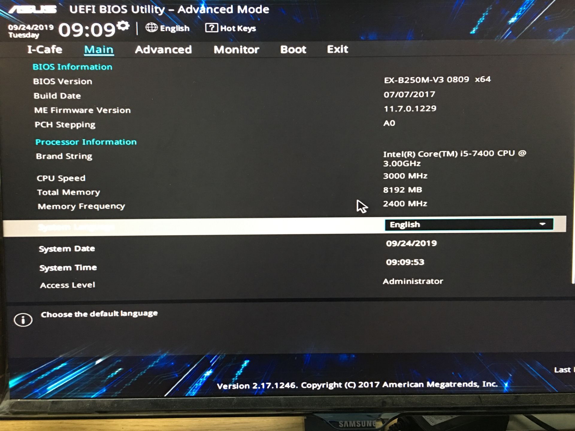 重启主机,按住del键,进入bios设置界面。
