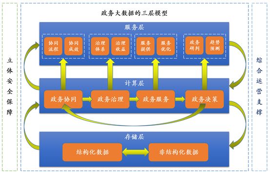 有关政务大数据的立体安全保障机制与体系建设将在后续文章《政务大数据的安全》中具体展开,有关政务大数据的综合运营支撑机制与体系建设将在后续文章《政务大数据的运营》中具体展开,本文重点讨论政务大数据的存储、计算和服务三层物理模型。