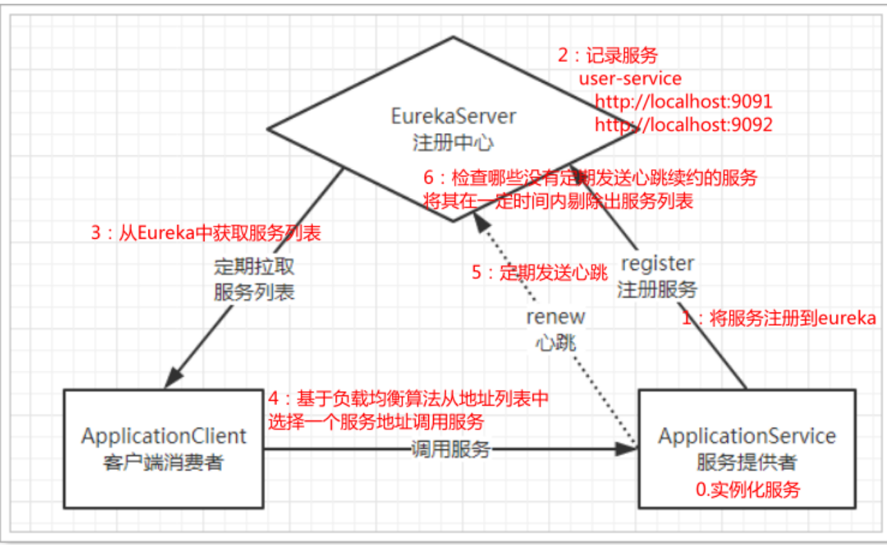 同时,服务提供方与Eureka之间通过 “心跳” 机制进行监控,当某个服务提供方出现问题,Eureka自然会把它从服务列表中剔除。