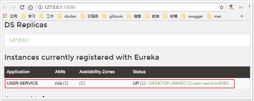在中UserApplication 并启动服务 刷新注册中心(eureka) 看是否注册上
