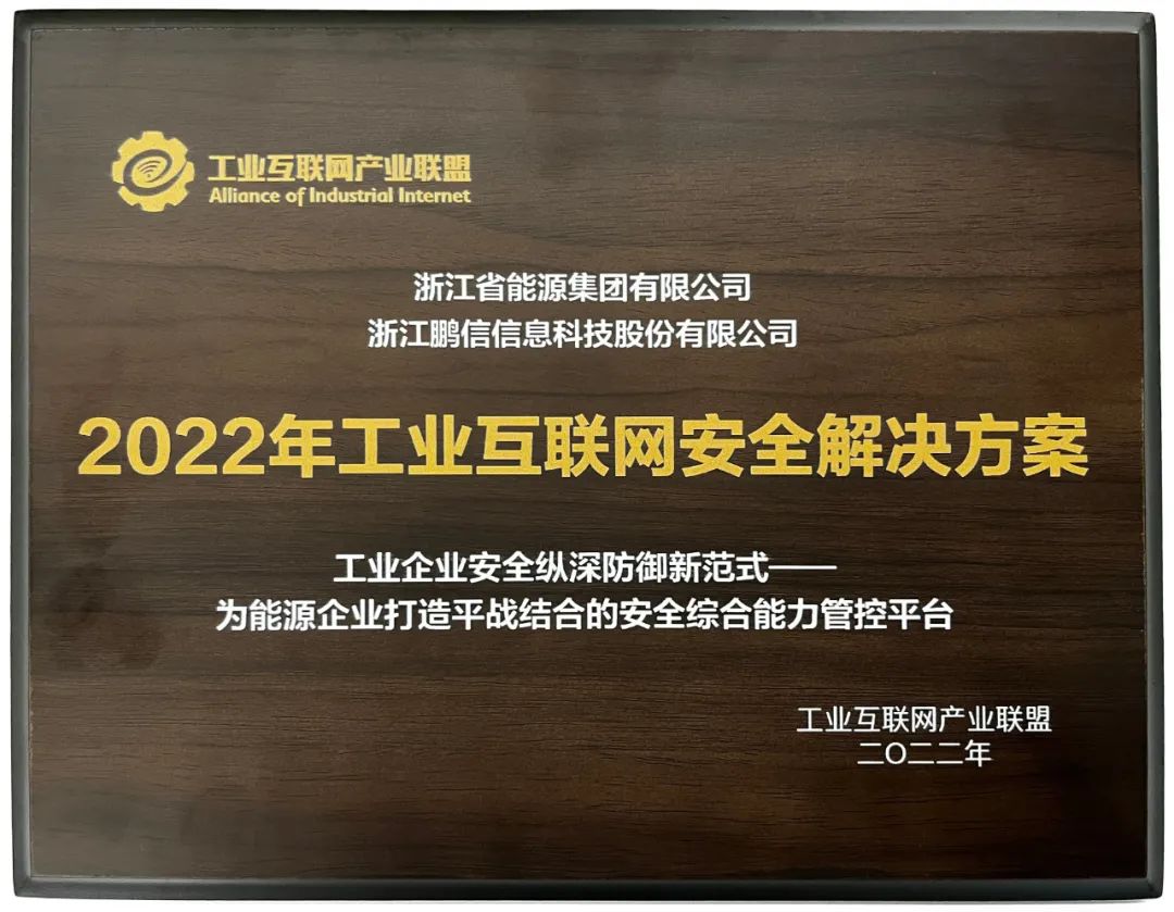 该项目方案由鹏信科技与浙江省能源集团有限公司共同合力打造,体现了鹏信科技在工业互联网领域的又一实践创新。